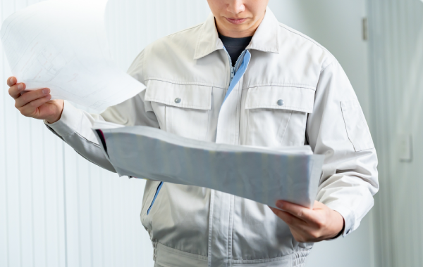図面を確認しながら現場スタッフと調整。必要があればお客様に進捗を説明することもあります。
